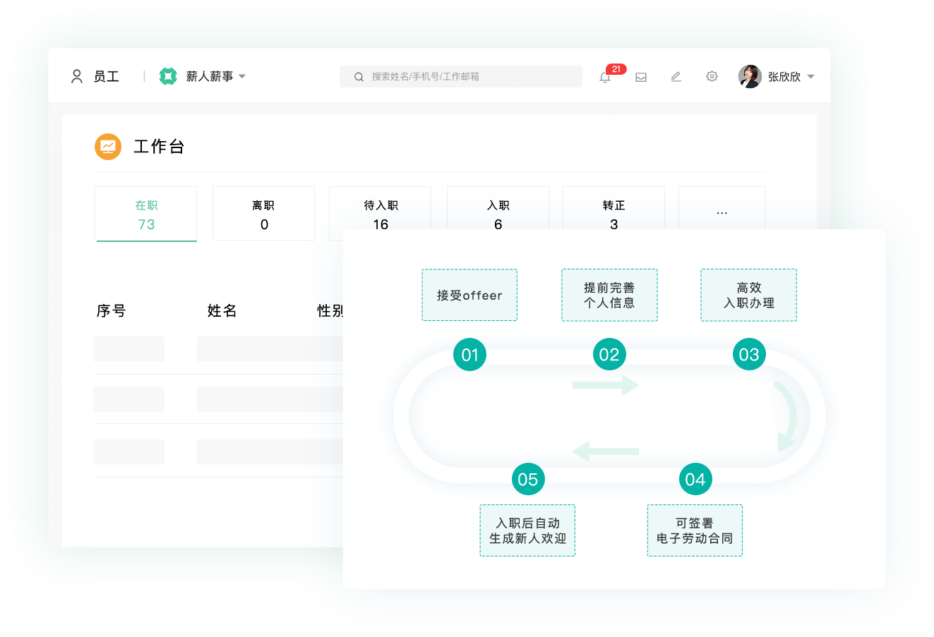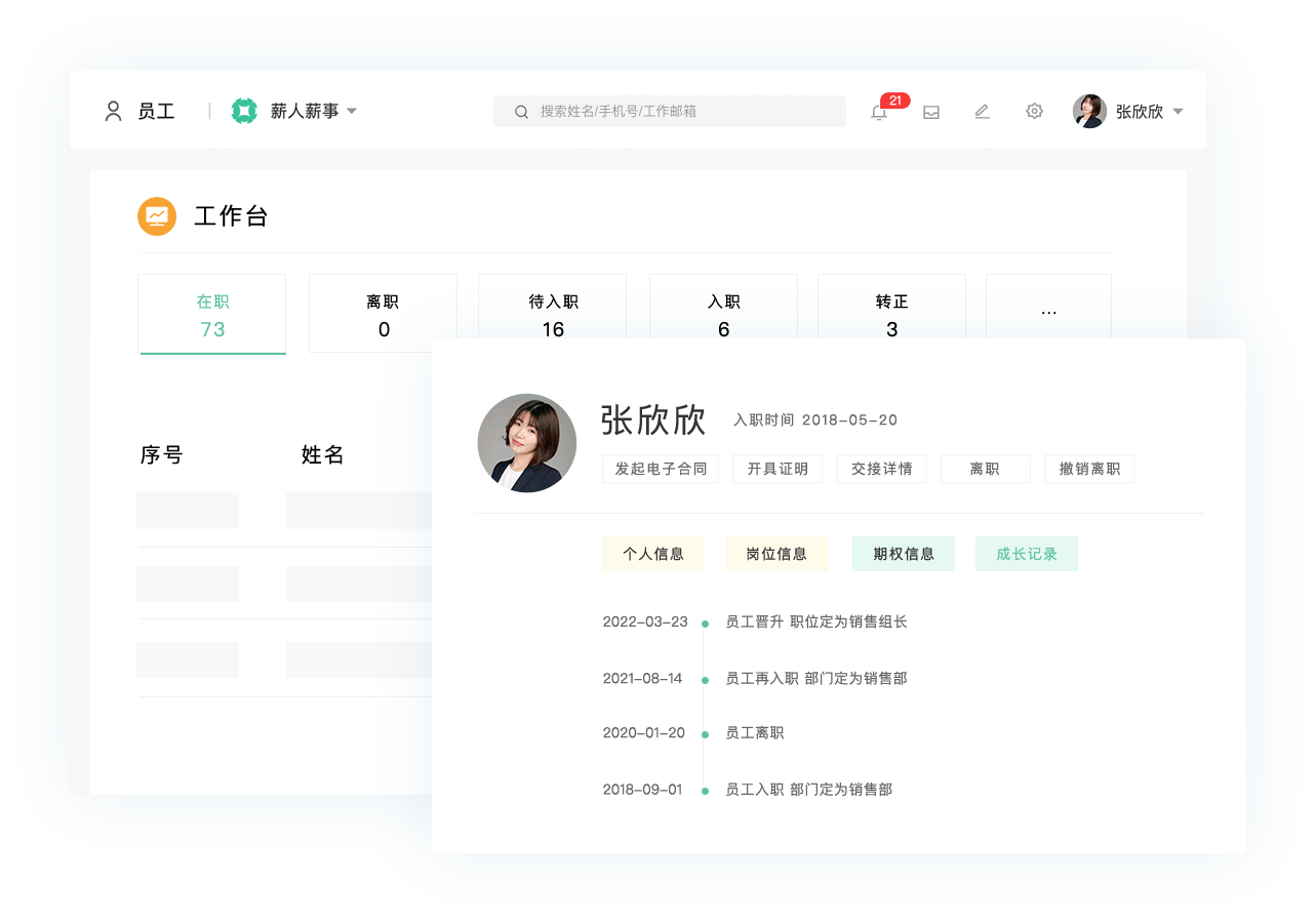歸集簡(jiǎn)歷、面試、人事異動(dòng)、薪酬、假勤等全生命周期