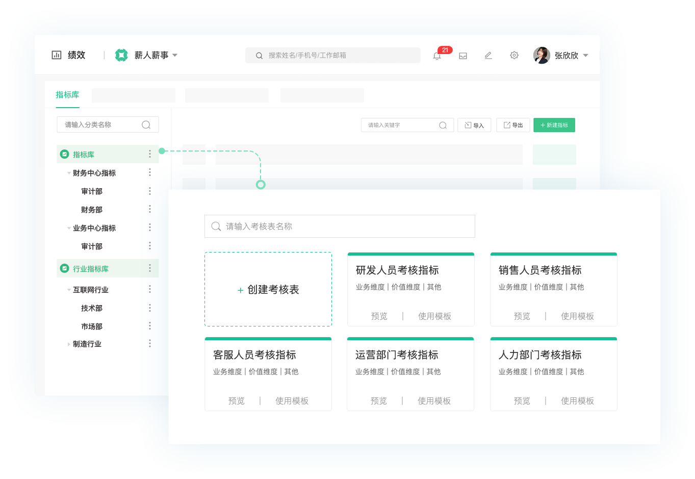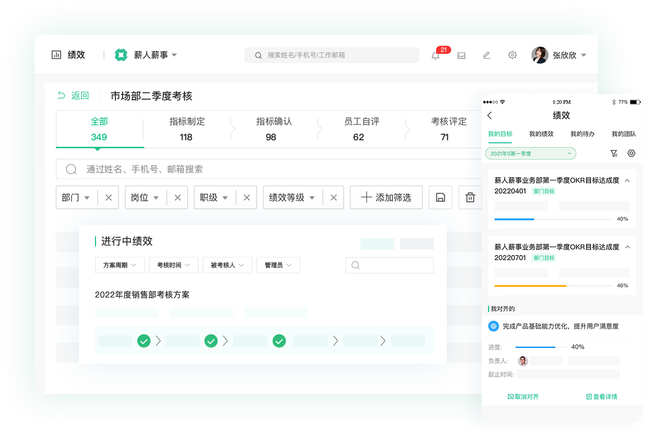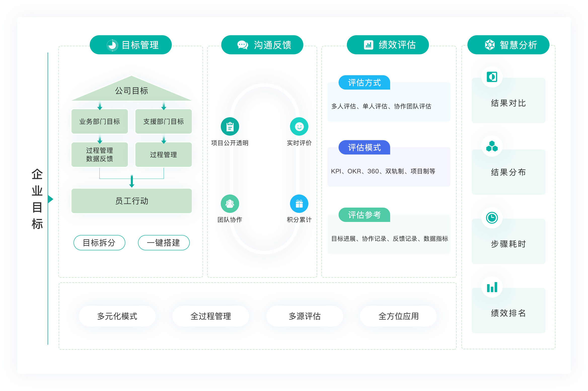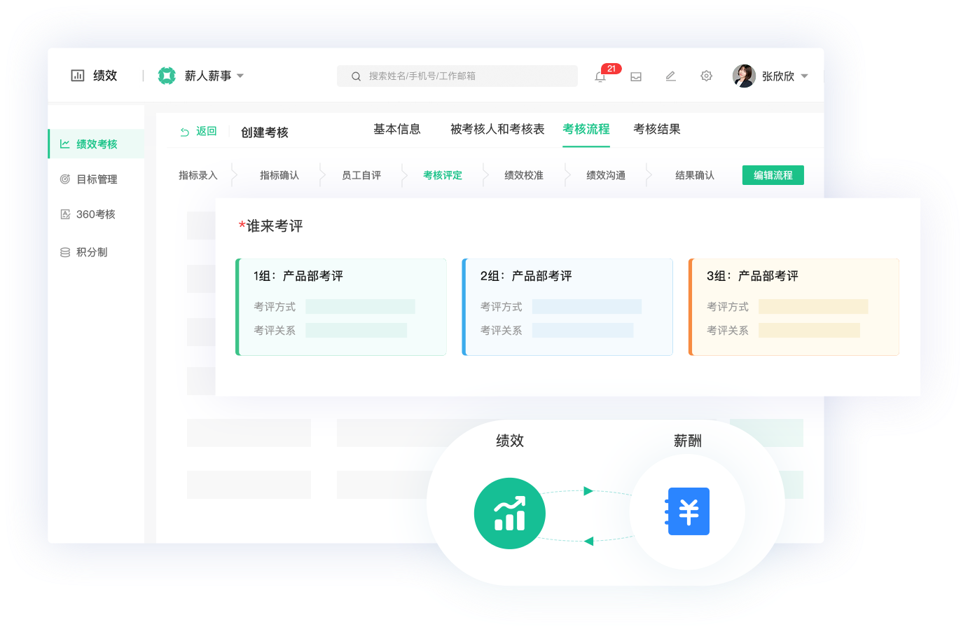 支持 KPI、PBC、OKR、360、項目制、積分制等多